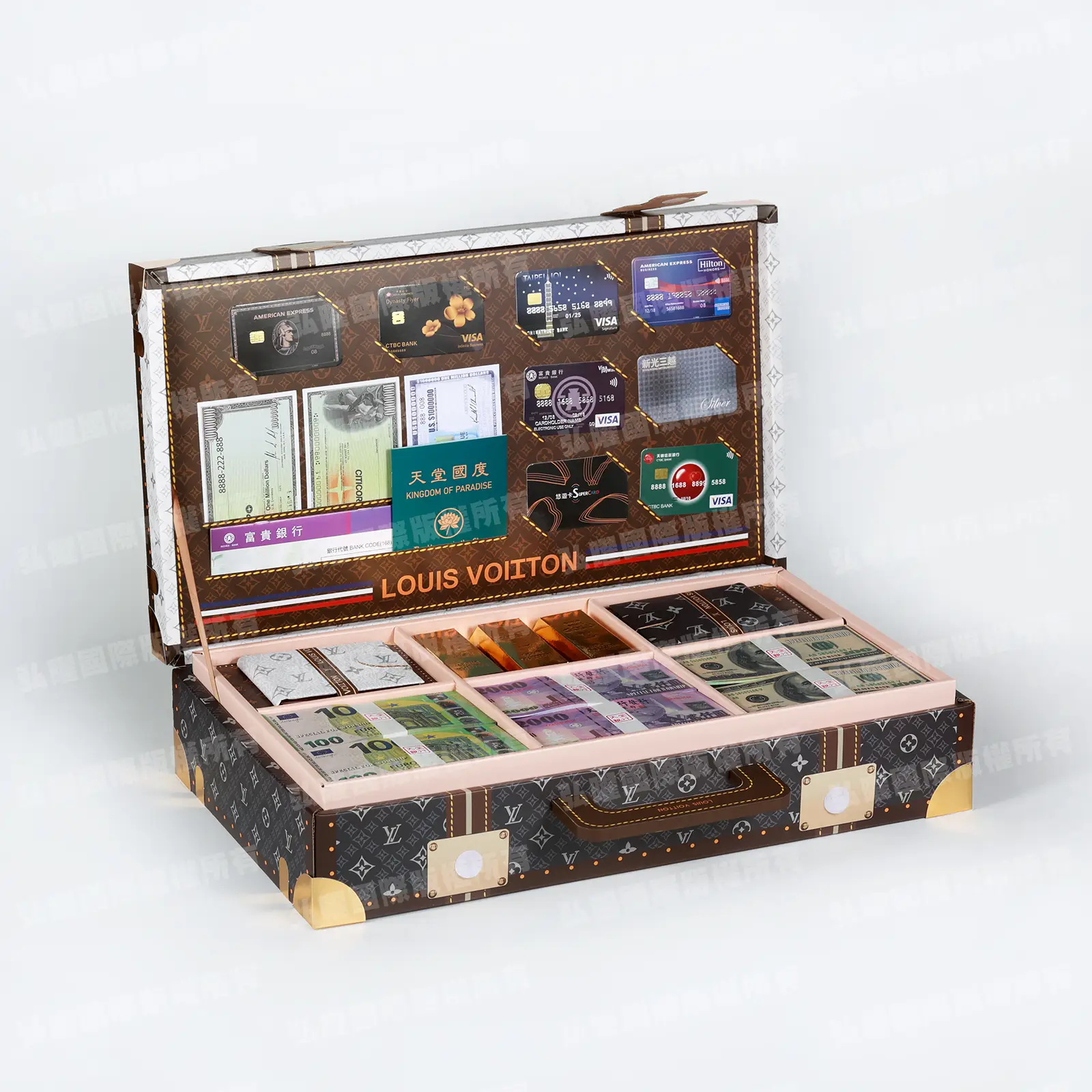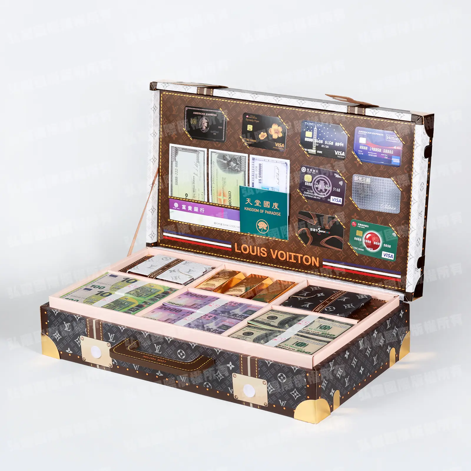 商品名稱:「紙紮LV奢華金燦皮箱(黑白)」款式